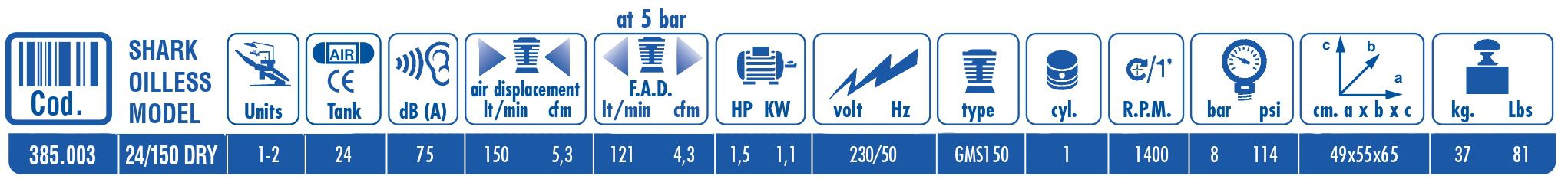 Compresor Shark Oilless 24/150 Dry C/Secador