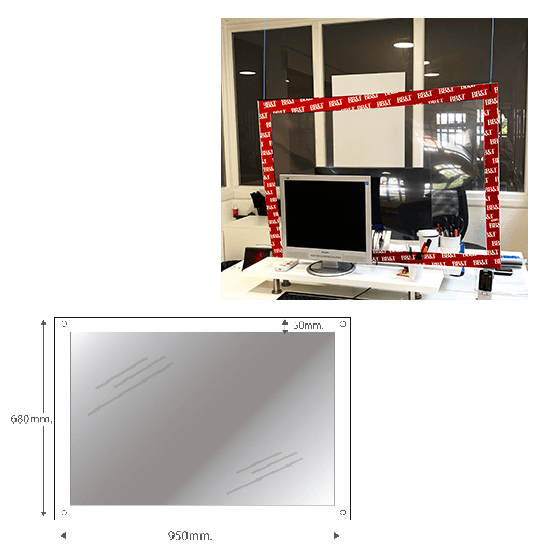 Mampara con marco de cartón y plástico.